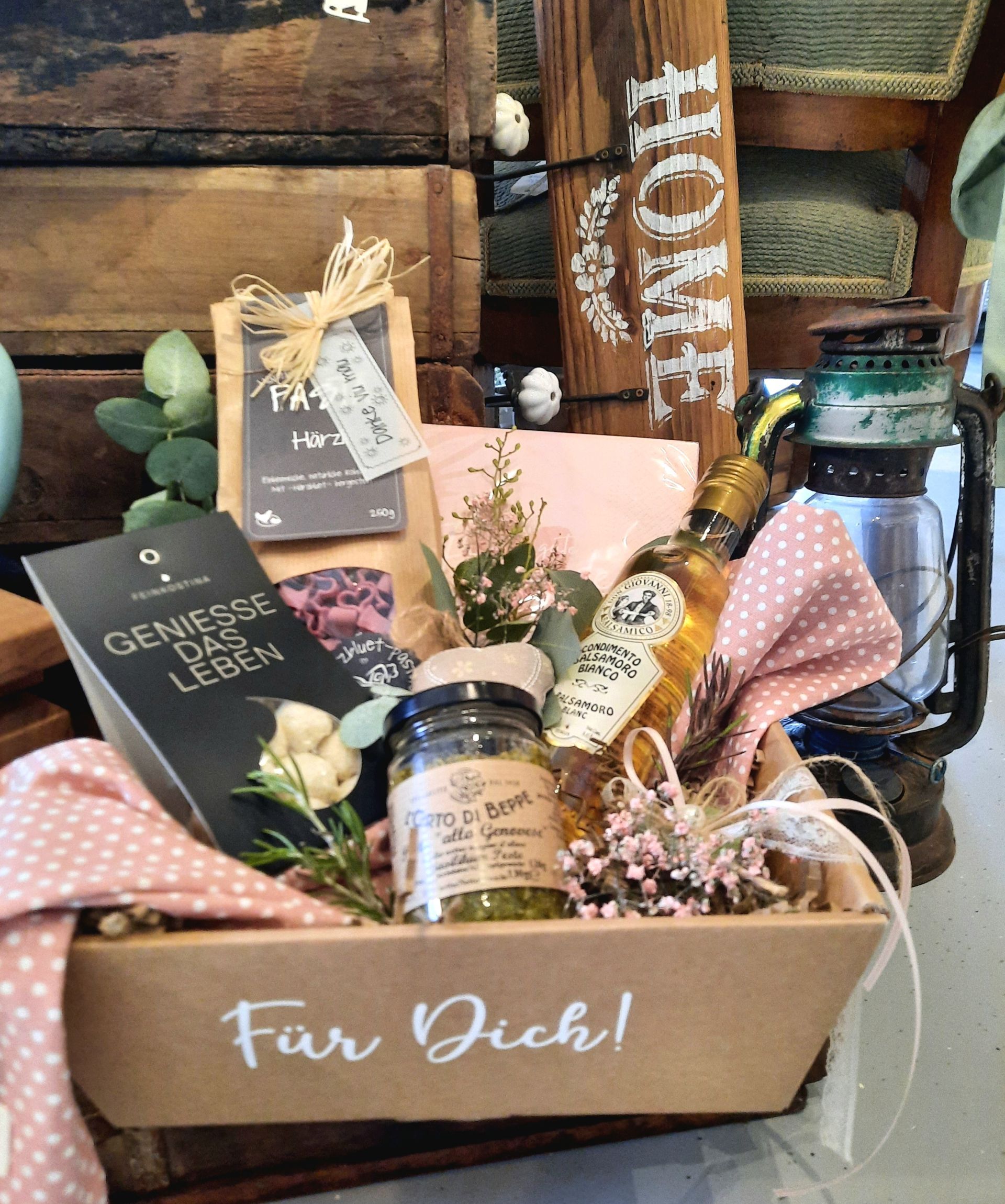 Unsere Geschenkkörbe bescheren überraschende Alltagsmomente und sind natürliche Gaumenfreunde. Zaubere deinen Liebsten ein Lächeln auf Gesicht.