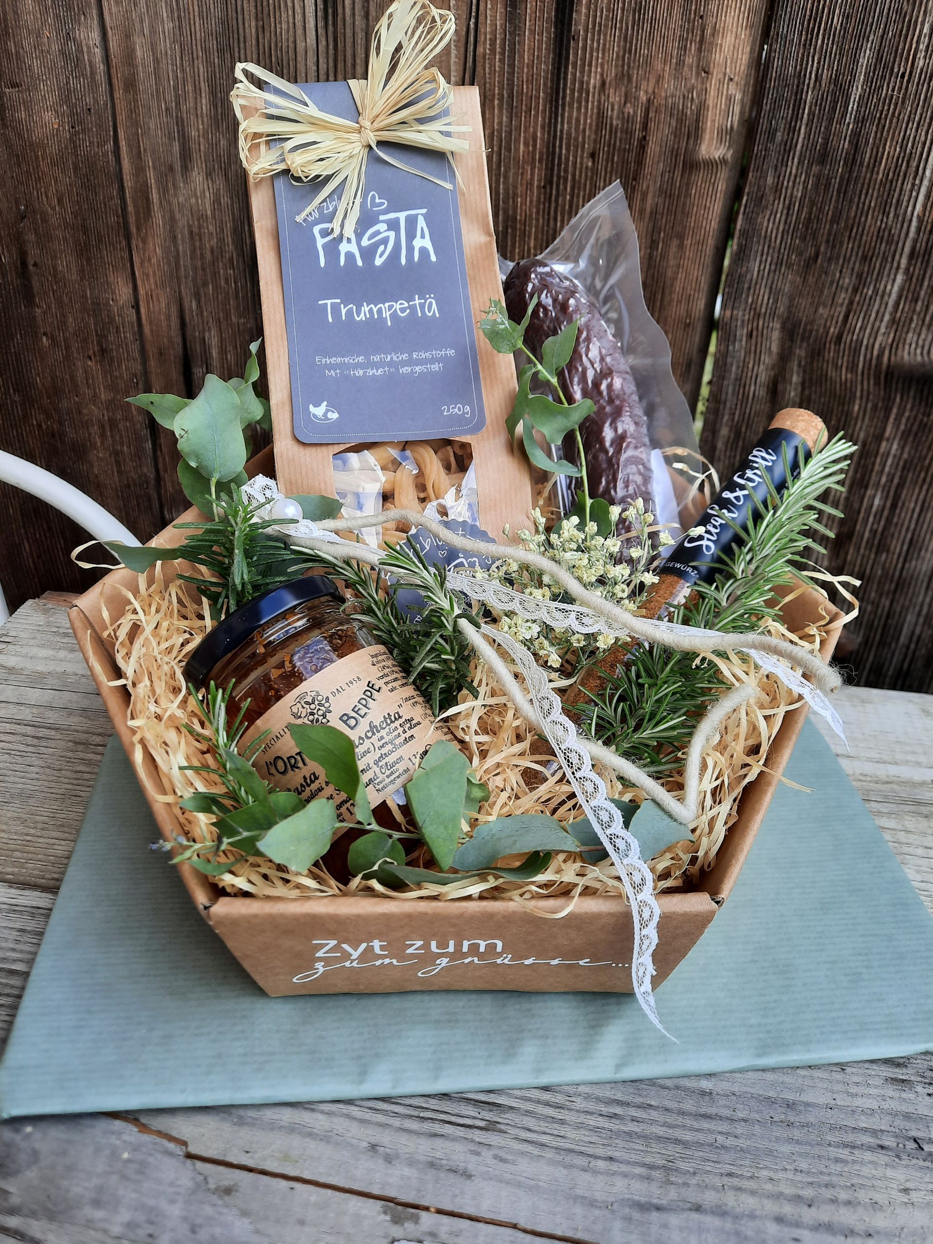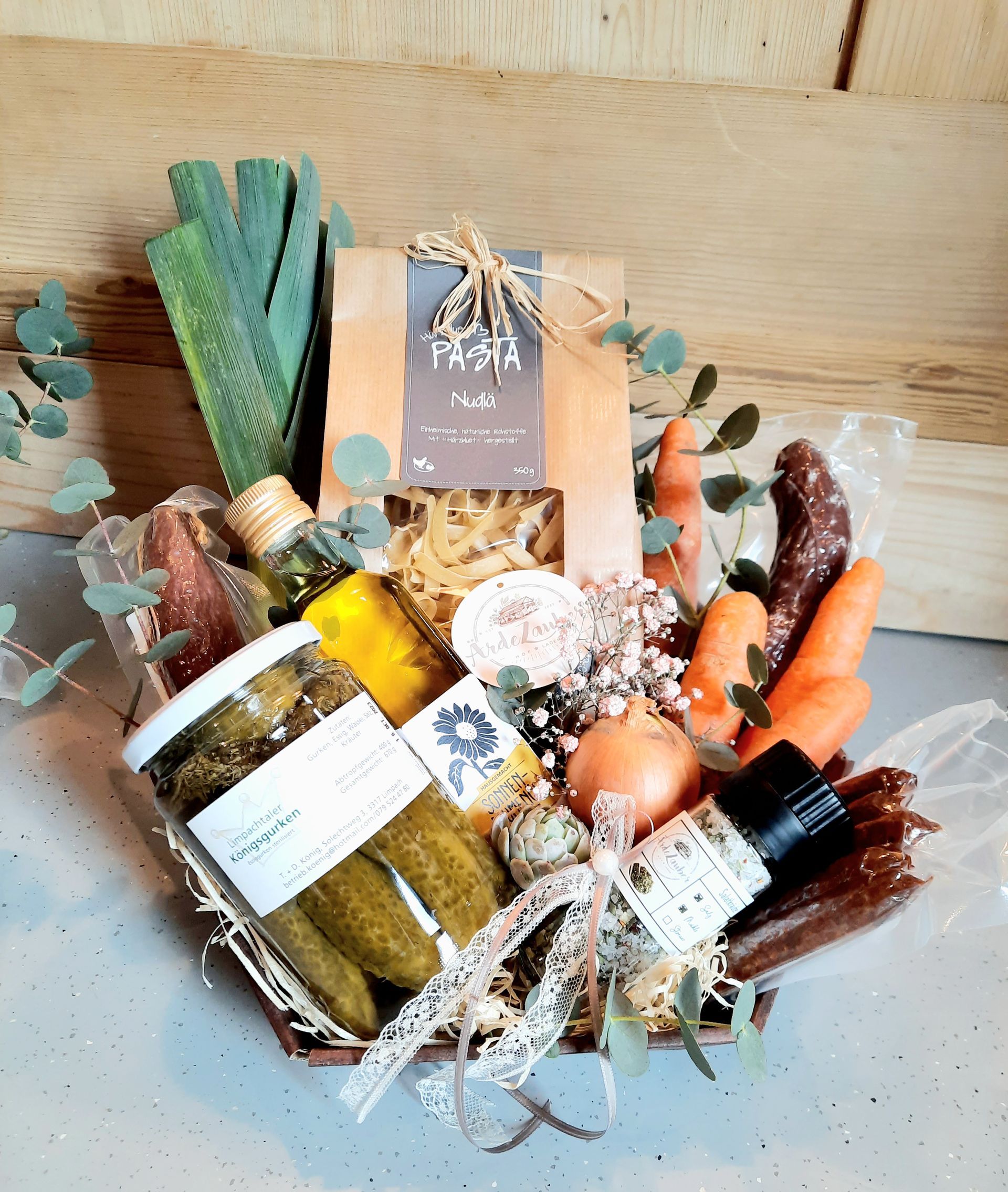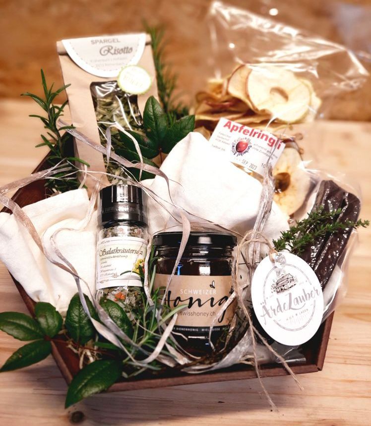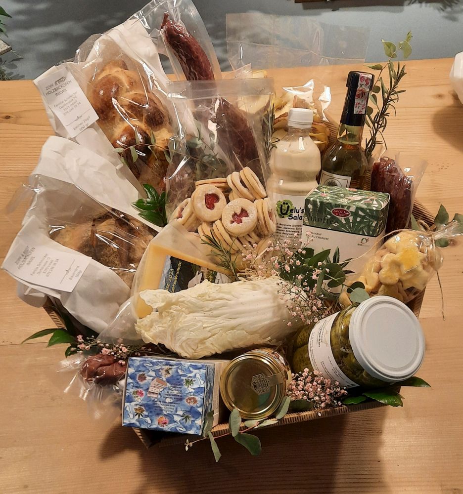 Mit aus schliesslich Schweizer Produkten stellen wir nach Ihren individuellen Wünschen Geschenkkörbe zusammen. Personalisierte Firmengeschenke mit Ihrem eigenen Logo sind ebenfalls möglich.