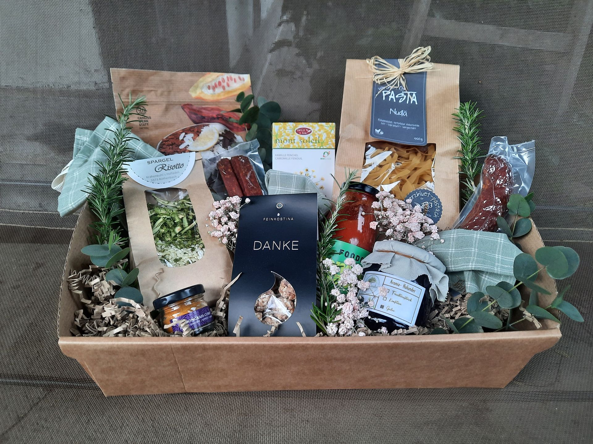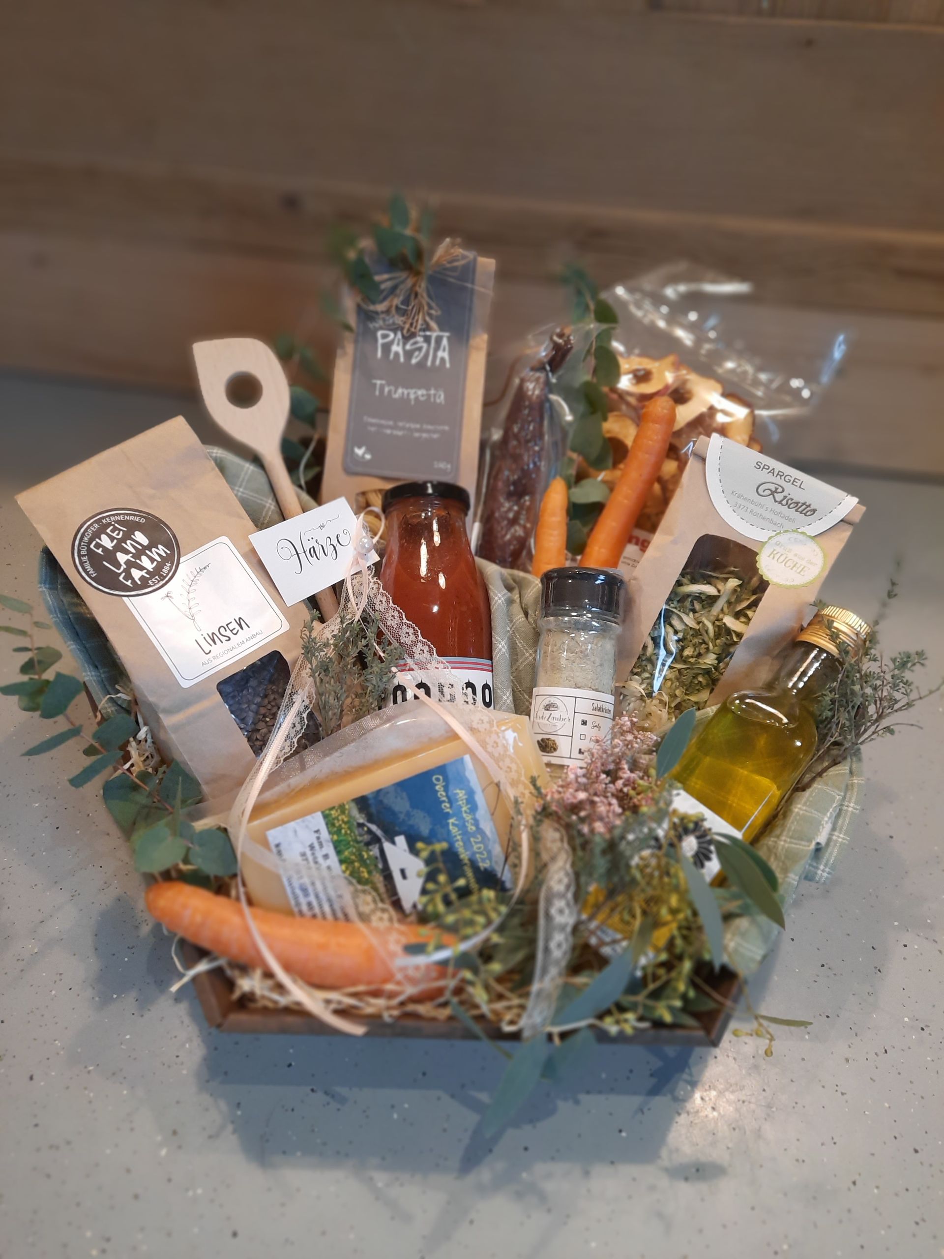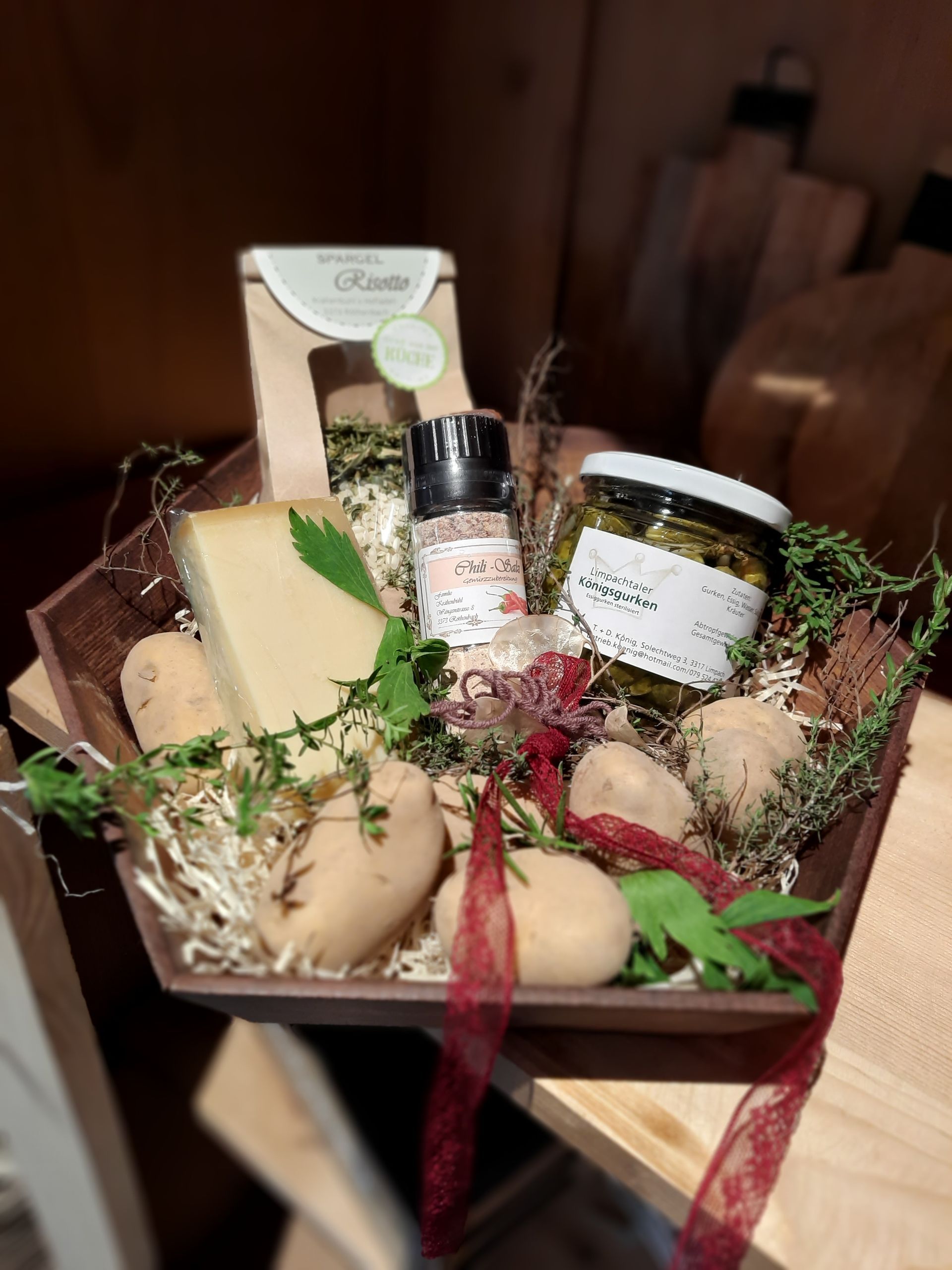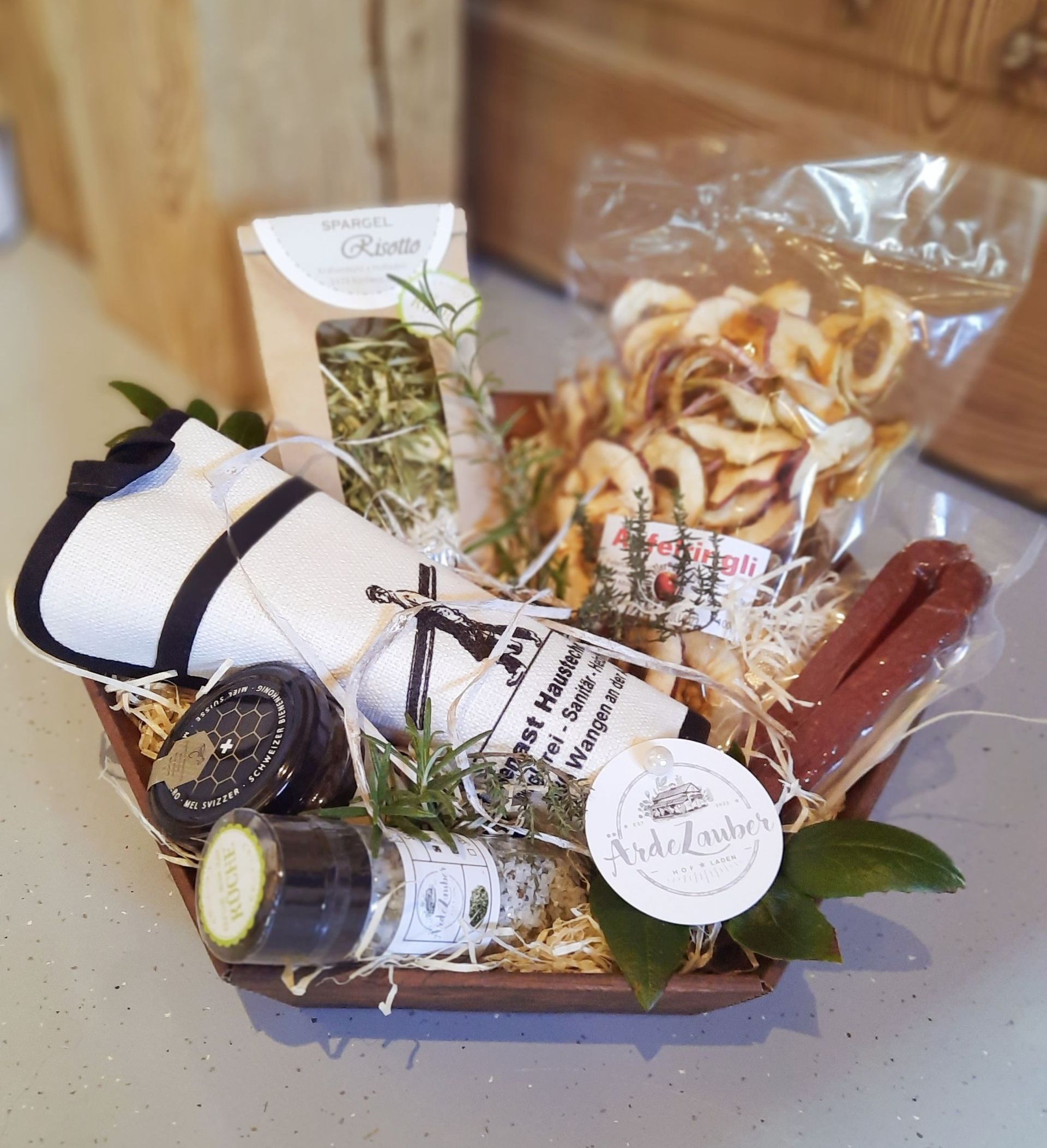 Mit aus schliesslich Schweizer Produkten stellen wir nach Ihren individuellen Wünschen Geschenkkörbe zusammen. Personalisierte Firmengeschenke mit Ihrem eigenen Logo sind ebenfalls möglich.
